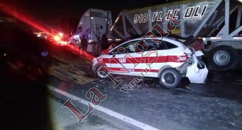 De acuerdo con versiones de testigos, el percance ocurrió cuando el taxi con número económico 3666 presuntamente intento rebasar a un tráiler.