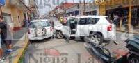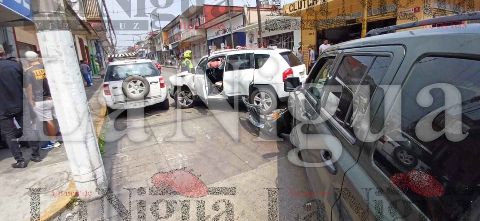 Córdoba, Ver.- El choque entre dos camionetas cuyos conductores presuntamente no respetaron la luz roja del semáforo en el cruce de la avenida 1 y calle 21 en la colonia Centro, donde además colicionaron contra otra camioneta estacionada, dejó una persona lesionada debido a que atropellaron a un peatón teniendo que ser atendido por paramédicos de la Cruz Roja y trasladado a un hospital para recibir atención médica.