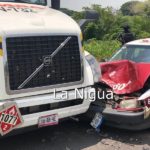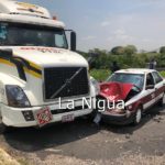 El hecho se registró luego de que una unidad pesada de la empresa Simsa saliera de la autopista para incorporarse a la carretera transistmica, cuando el conductor del taxi 60 de Sayula, se impactó de frente contra el tráiler.