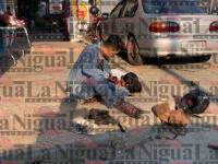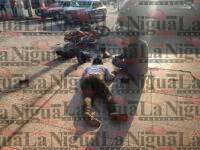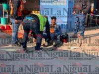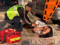 En la motocicleta viajaba un hombre y una mujer, quienes salieron proyectados varios metros de distancia, el varón refería fuerte dolor en la pierna izquierda, mientras que su acompañante resultó con fractura de brazo derecho, golpes, laceraciones, y quedó sobre la banqueta.