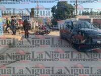 En el percance se vieron involucrados una motocicleta de la marca Italika, de color rojo con negro, y una camioneta de la marca Kia, color azul marino, con placas de circulación, cuyas unidades quedaron atravesadas obstaculizando la vialidad.