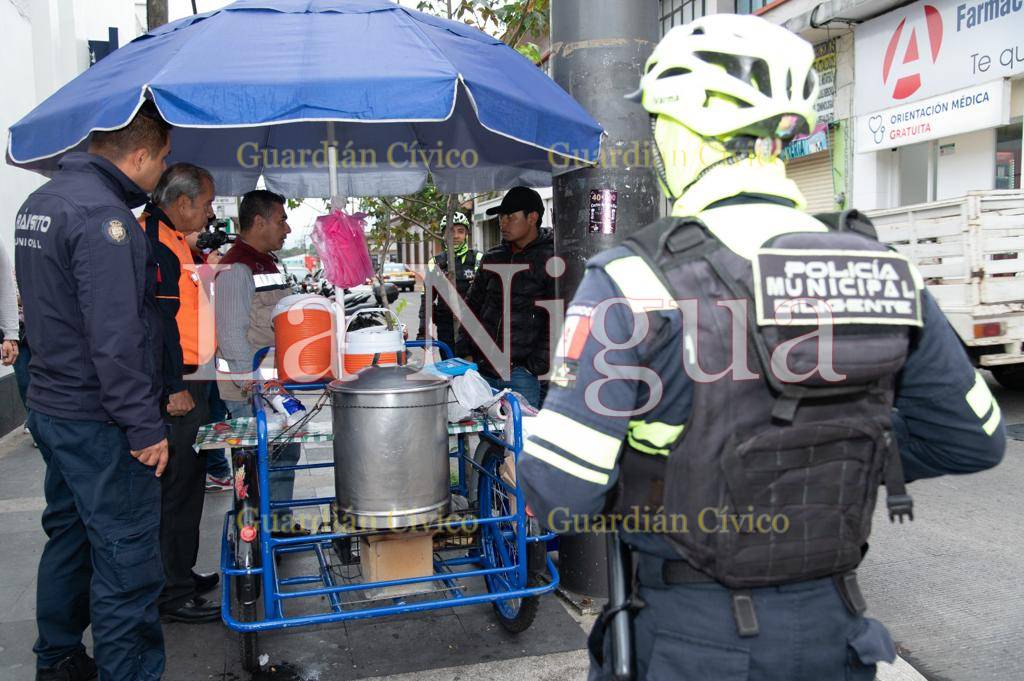 El coordinador de Inspección de Comercio, Rodolfo Delfín de la Llave, explicó que esta es una primera invitación para los establecimientos y comercios en respetar la vía pública y sus anuncios o productos no sobrepasen su local, y en el caso de vendedores en carretillas o con algún otro medio para comercializar en la vía pública a retirarse; posteriormente el personal está facultado para decomisar la mercancía o sanciones con respecto al reglamento municipal.