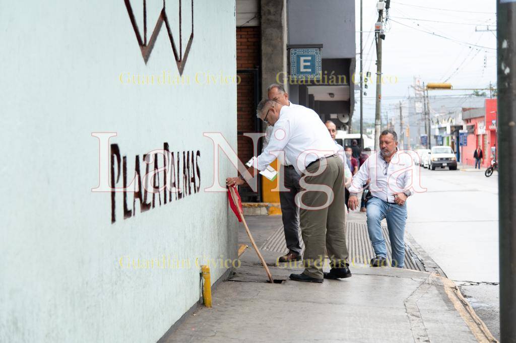 Durante el recorrido, el Director de Obra Pública e Infraestructura Municipal, Jorge Landero Medrano, anotó los desperfectos en las banquetas y guarniciones, así como tapas y registros dañados, expuestos a un riesgo para el peatón que serán canalizados a Hidrosistema para las labores de reparación.