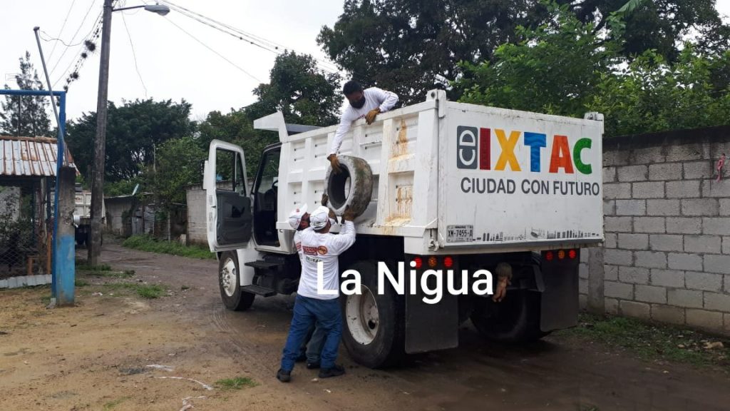 Ixtaczoquitlán, Ver.- Para frenar la proliferación del mosco que provoca enfermedades como el dengue, zika chikungunya, las Brigadas de Descacharrización del Ayuntamiento de Ixtaczoquitlán continúan recorriendo las colonias y comunidades del municipio para recolectar cacharros.