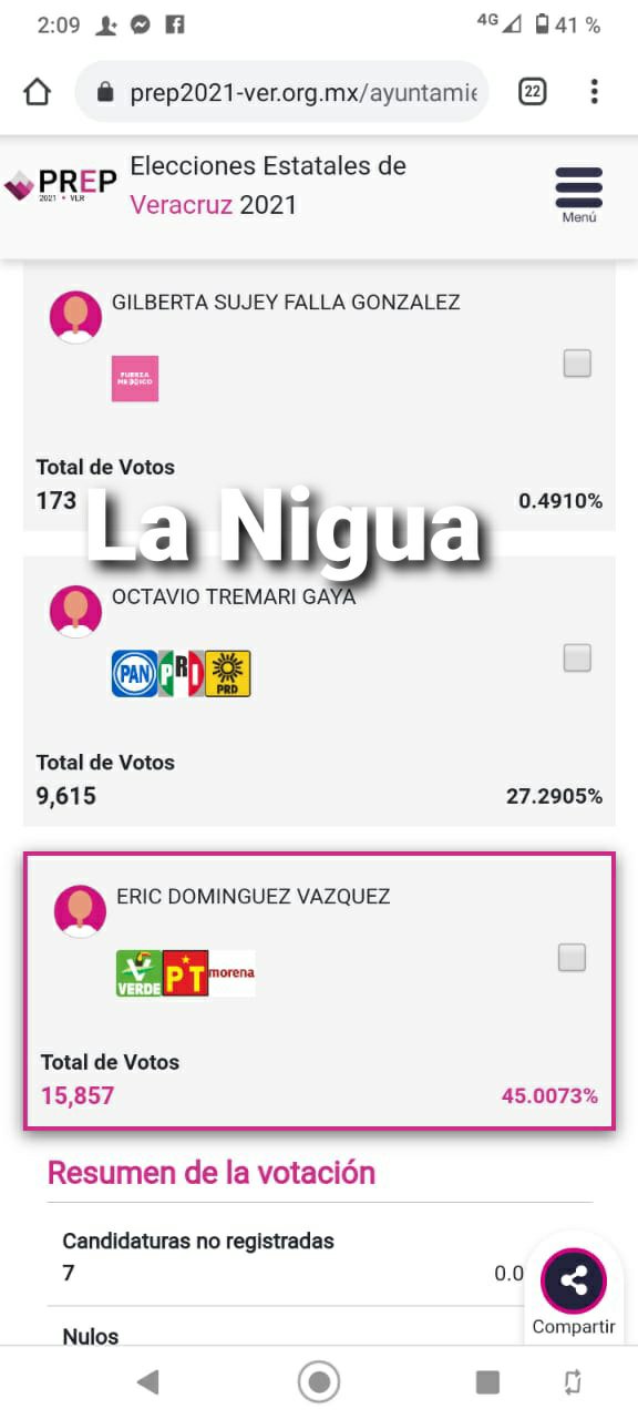 Llevando una amplia ventaja, el candidato presenta una clara tendencia resulta a su favor en forma por demás inobjetable. Domínguez Vázquez, será alcalde a partir del 1 de enero del 2022 y trabajará de la mano con el pueblo papanteco en el periódo 2022-2025, comprometiéndose a lograr la transformación de este municipio, señalando que su palabra empeñada durante la campaña, se verá respaldada en los compromisos que serán cumplidos durante su gobierno municipal.