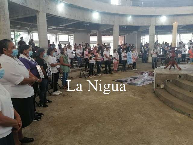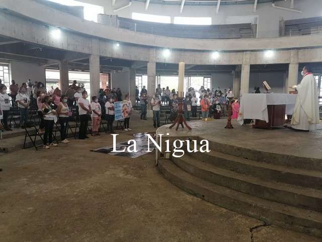 Un grupo de madres, padres y esposas que son alrededor de 40 personas arribaron a la parroquia de nuestra señora de Guadalupe a presenciar la misa, portando cada una las imágenes de sus seres queridos que se encuentran desaparecidos.