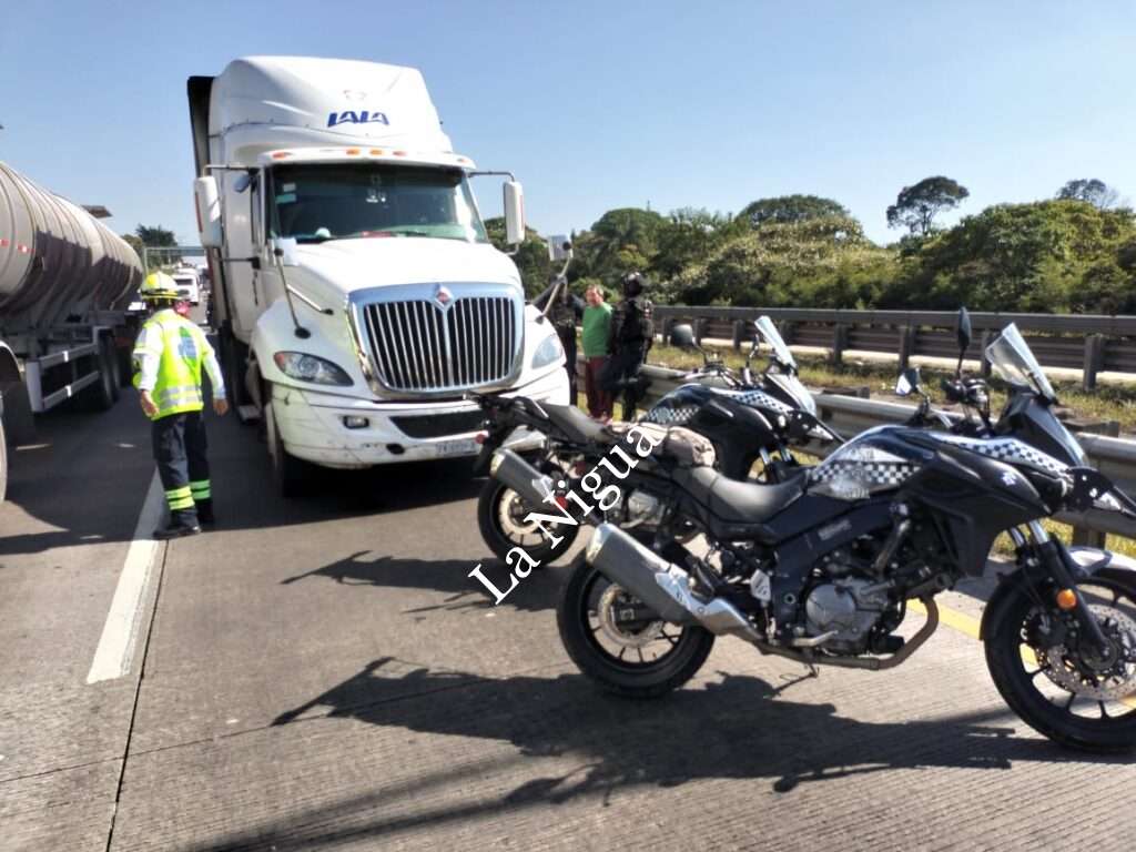 El tractocamión fue asegurado por elementos de la Guardia Nacional, quienes esperan el arribo de un perito criminalista.