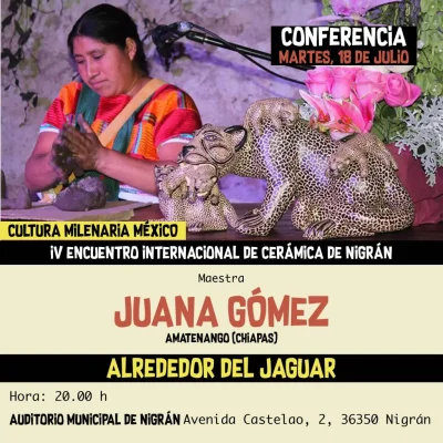 INTERNACIONAL. Juana Gómez Ramírez, maestra alfarera, creadora de Jaguares de cerámica fue invitada al IV Encuentro Internacional de Cerámica “Cultura Milenaria México” que se realizará en Nigrán, España.