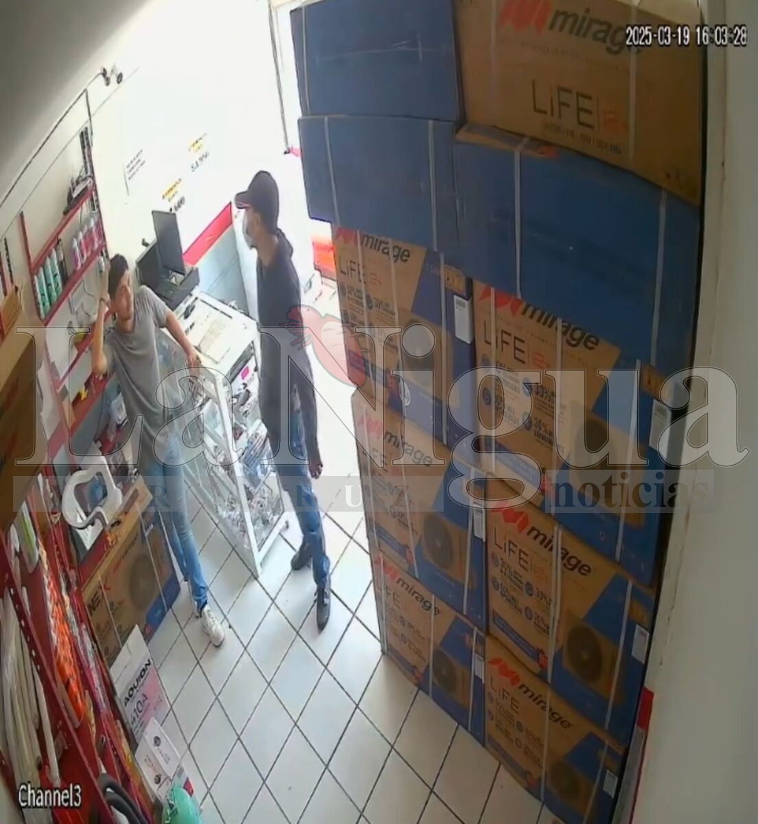 Minatitlán, Veracruz . – Un violento asalto fue captado por cámaras de seguridad en un negocio de venta y reparación de equipos de aire acondicionado, ubicado sobre la avenida Justo Sierra en el municipio de Minatitlán.