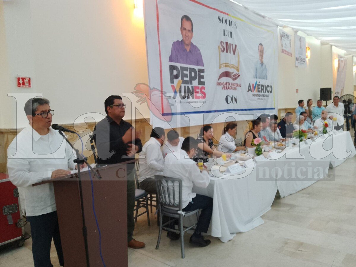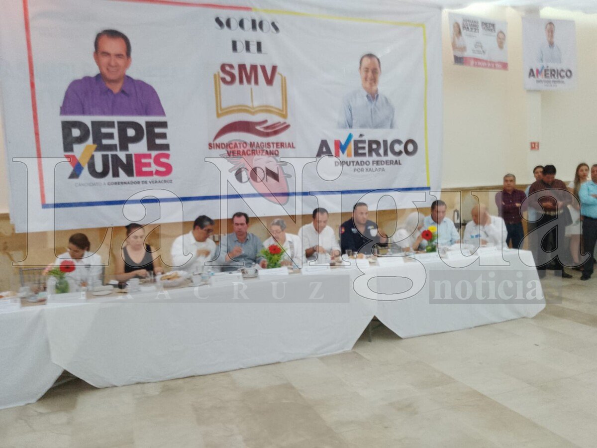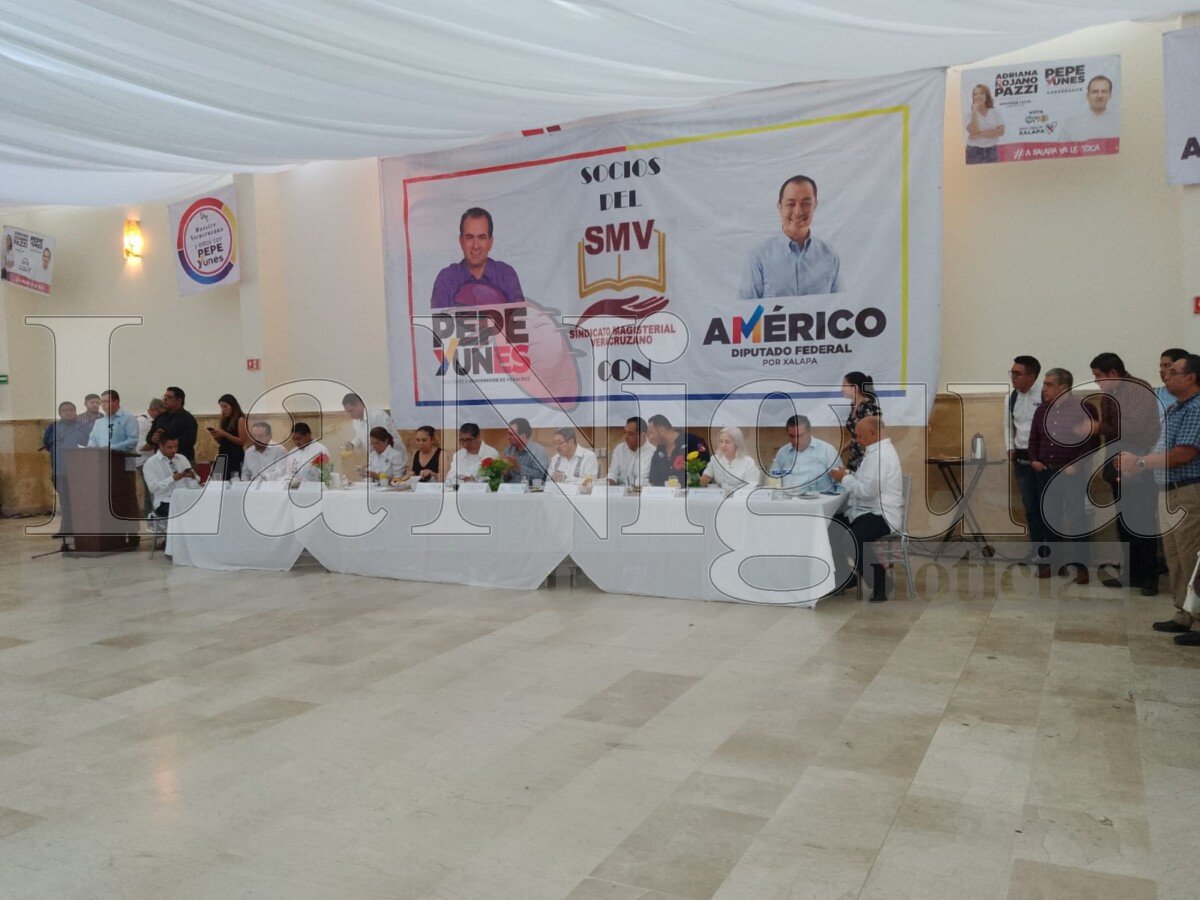 En su intervención, el secretario general del SMV, Ramón Domínguez Polo, expresó su apoyo a los candidatos de la alianza y afirmó: “El magisterio está con ustedes. Sabemos que van a ganar. José Francisco Yunes Zorrilla, usted será el futuro gobernador de Veracruz. Le pedimos que no olvide al magisterio veracruzano”.