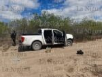 Los agresores huyeron al interior de la maleza, sin embargo, resultado de este evento, se logró el aseguramiento de dos camionetas, una Nissan Frontier, sin matrícula ni número de serie, así como una Honda Ridgeline sin placas de circulación.