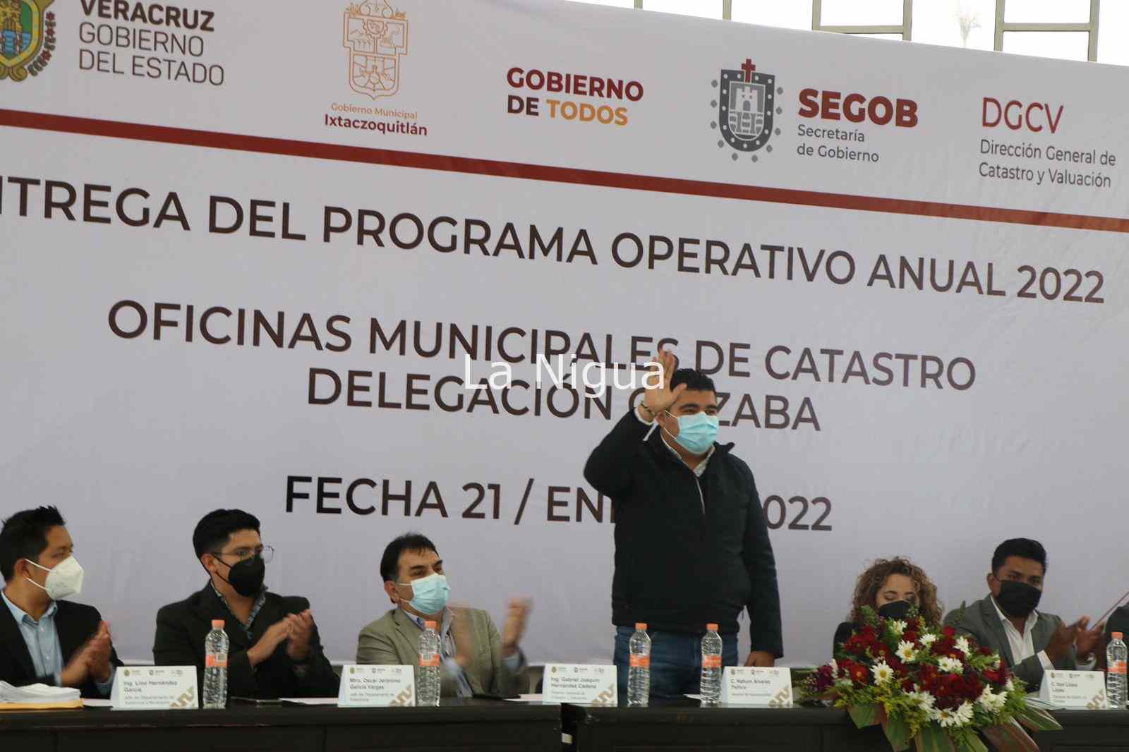 Ixtaczoquitlán, Veracruz, 21 de Enero de 2022.- Este viernes , el Presidente Municipal de Ixtaczoquitlán, Nahúm Álvarez Pellico, asistió al evento denominado “Entrega del Programa Operativo Anual Municipal 2022” que realiza la Dirección General de Catastro y Valuación del Estado de Veracruz, del cual nuestro municipio ha sido la sede para su realización, con la participación de :