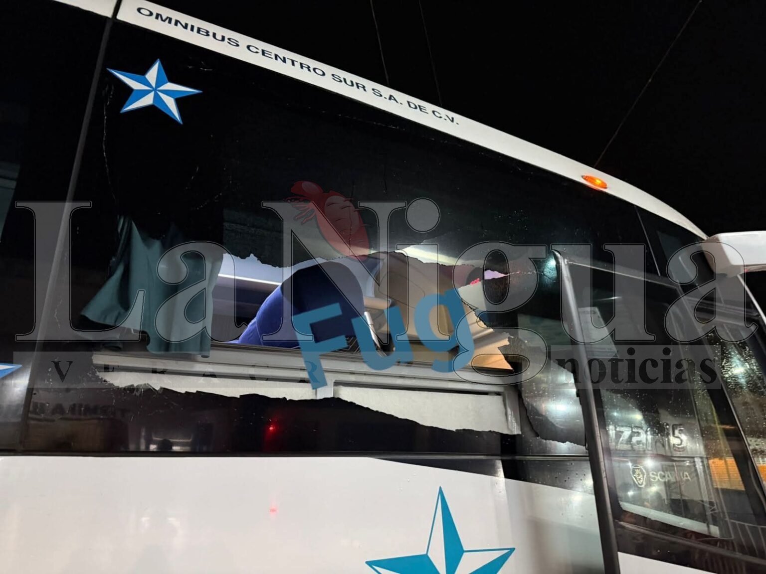 #Chocamán.- El autobús marcado con el número económico 633 de la línea Astro Plus, que cubría la ruta Orizaba–Xalapa, fue atacado a pedradas la tarde de este miércoles mientras circulaba sobre la carretera federal Conejos–Fortín, a la altura del tramo que conduce a Chocamán.