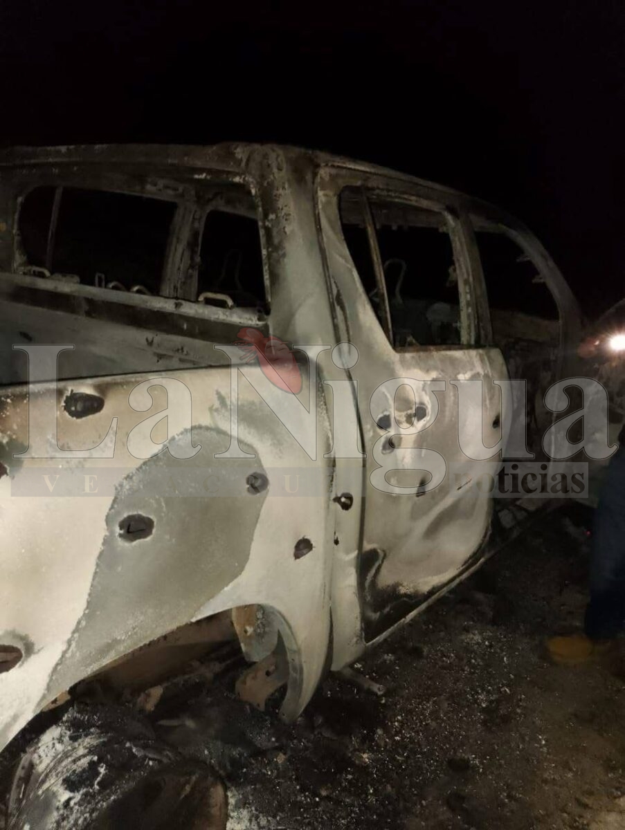 Al llegar al lugar, los agentes confirmaron que se trataba de una Toyota Hilux blanca, la cual presentaba al menos 20 impactos de bala de calibre 9mm y había sido consumida por el fuego. Afortunadamente, no se reportaron víctimas, siendo las pérdidas únicamente materiales.