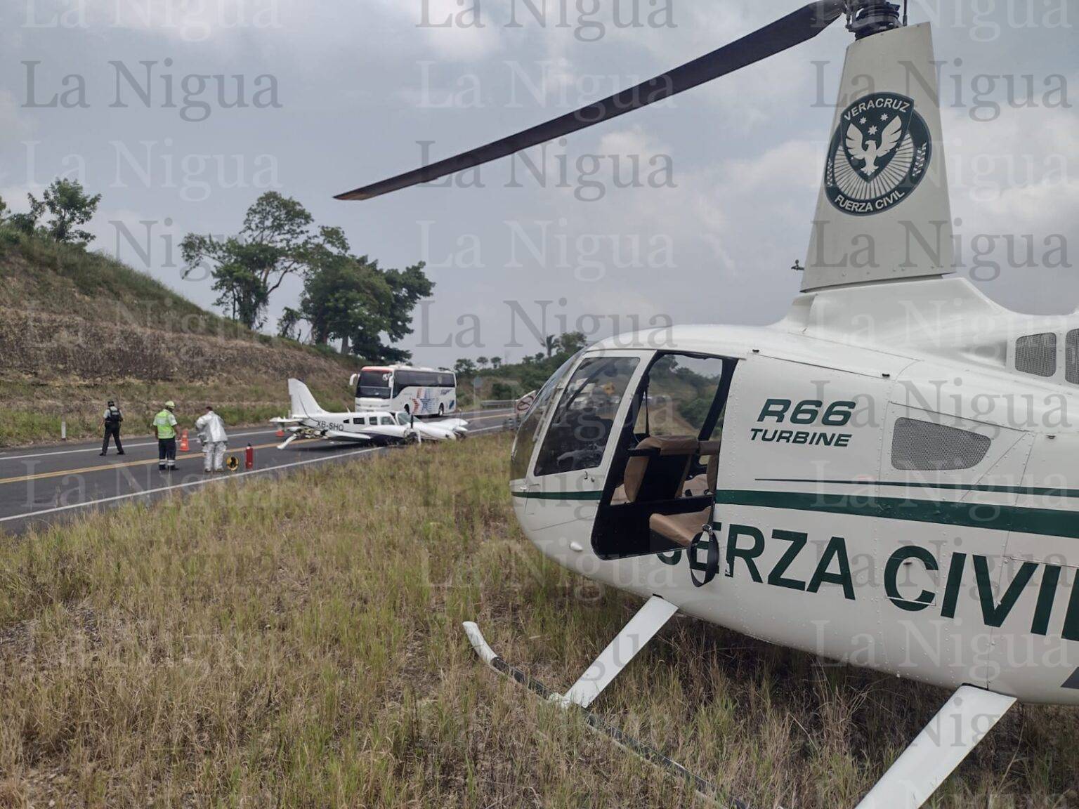 La nave tipo Cessna con matrícula XB-SHQ que despegó del centro del país y que se dirigía a Tajín quedó enmedio de un carril de la autopista y hasta el momento no hay información de la Identificación de los tripulantes.