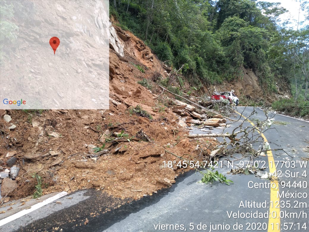En la carretera Tuxpanguillo – Zacatla tramo Barrio Teopanapa a la altura del kilómetro 0+350, también se registró un deslizamiento de tierra que obstruye parcialmente la vialidad, y que fue retirado por cuadrillas de Obras Públicas.