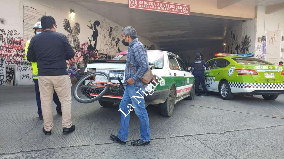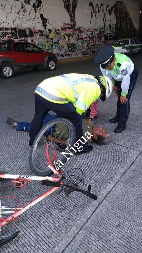 Xalapa, Ver.- La mañana de martes en la entrada del viaducto del parque Juárez de esta ciudad de Xalapa, fue atropellada una persona del sexo masculino, cuando conducía su bicicleta por el conductor del taxi de la región de Xalapa con placas de circulación A-398-XCW, por el impacto fue lanzado varios metros y cayó al piso de concreto hidráulico, resultando con lesiones graves en su cabeza, de inmediato llegaron paramédicos de la cruz roja para su atención médica y fue trasladado al hospital civil Luis F. Nachon, para su valoración madica, su estado de salud se reporta grave.
