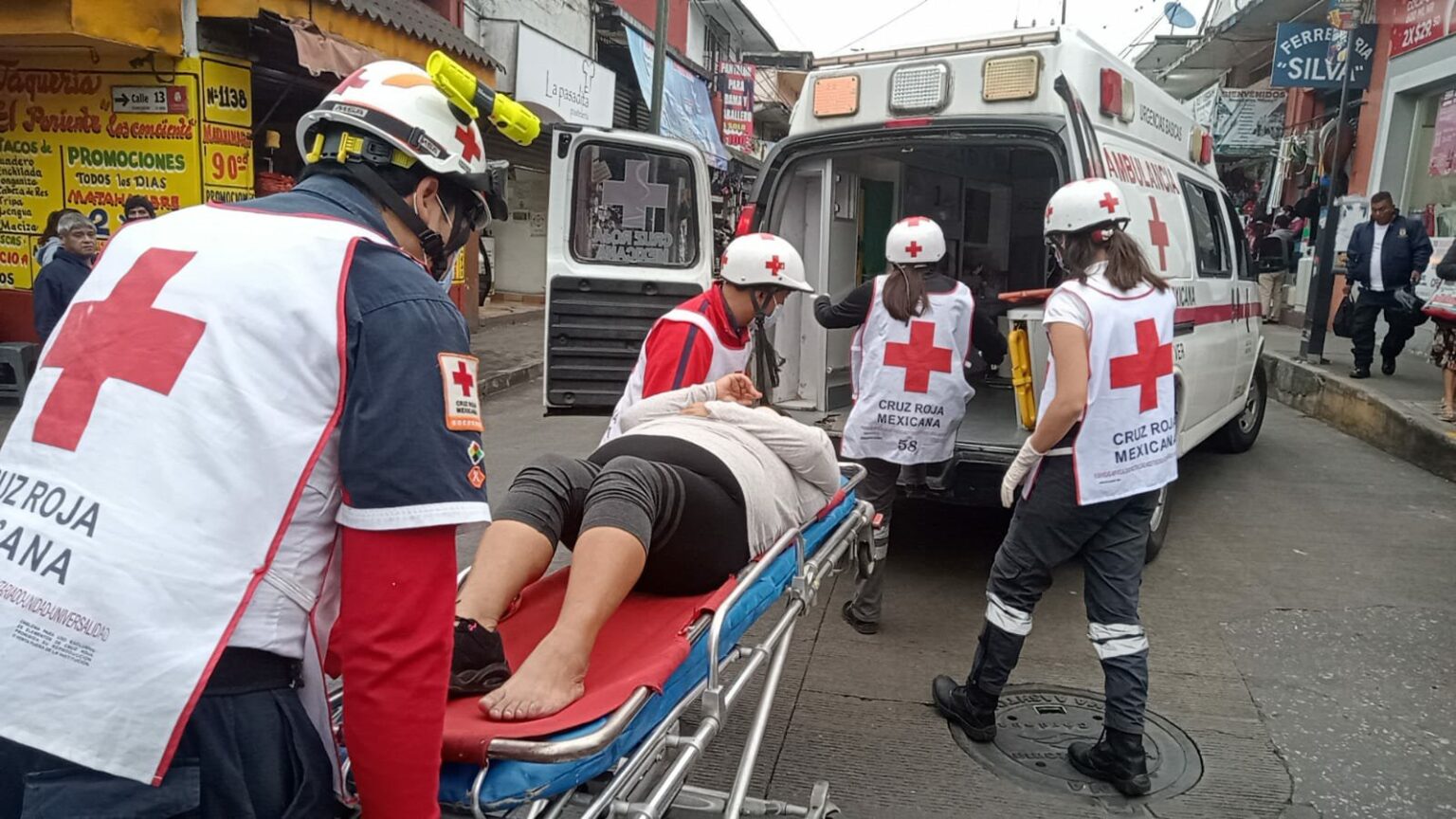Técnicos en Urgencias de la Cruz Roja le brindaron los primeros auxilios a la lesionada que fue canalizada a un hospital para su atención.