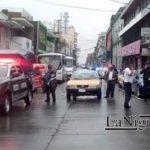 El percance sucedió la tarde del jueves, cuando la oficial Guadalupe “N” se encontraba dirigiendo el tráfico en el crucero de la avenida 2 y calle 1. Se presume que al momento que marcó el alto, debido al piso mojado y la velocidad, fue embestida por el Taxi Tsuru número económico CO-256.