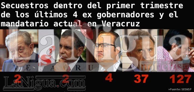 En su primer trimestre de gobierno, diciembre 2018-enero-febrero 2019, Cuitláhuac García Jiménez supera por mucho los casos de secuestros denunciados, en el mismo periodo, en los gobiernos de los anteriores cuatro ex gobernadores, Miguel Ángel Yunes Linares, Javier Duarte, Fidel Herrera y Miguel Alemán
