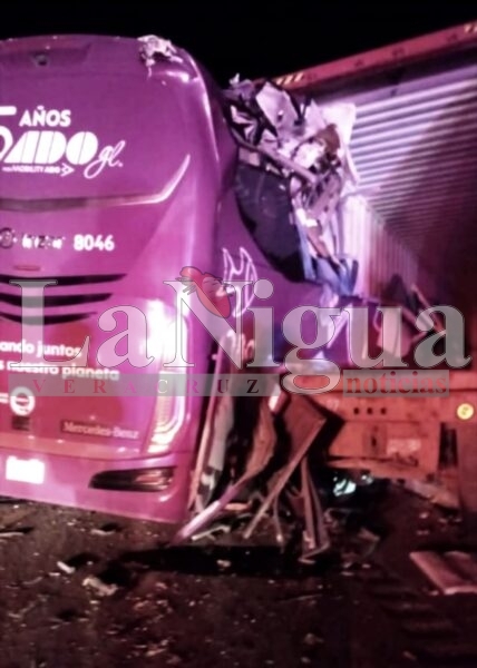 Dicho percance, ocurrió en las primeras horas de este Viernes 27 de Diciembre del presente año cuando el conductor de un autobús de pasajeros, con el número 8046, cubría la ruta Ciudad de México–Xalapa y transportaba aproximadamente 40 pasajeros, debido a la intensa neblina, no se percato de la presencia de una pesada unidad para impactarse en forma brutal.
