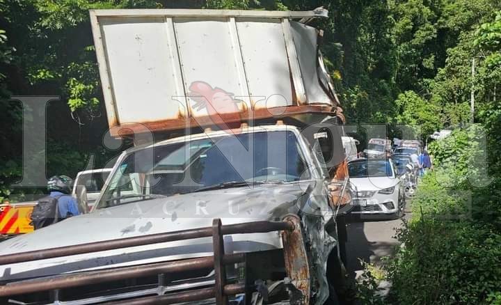 Al llegar a la altura de la barranca de Coscomatepec, se impacto contra una camioneta de tres toneladas, luego la unidad de pasaje salió proyectada hacia el barranco.