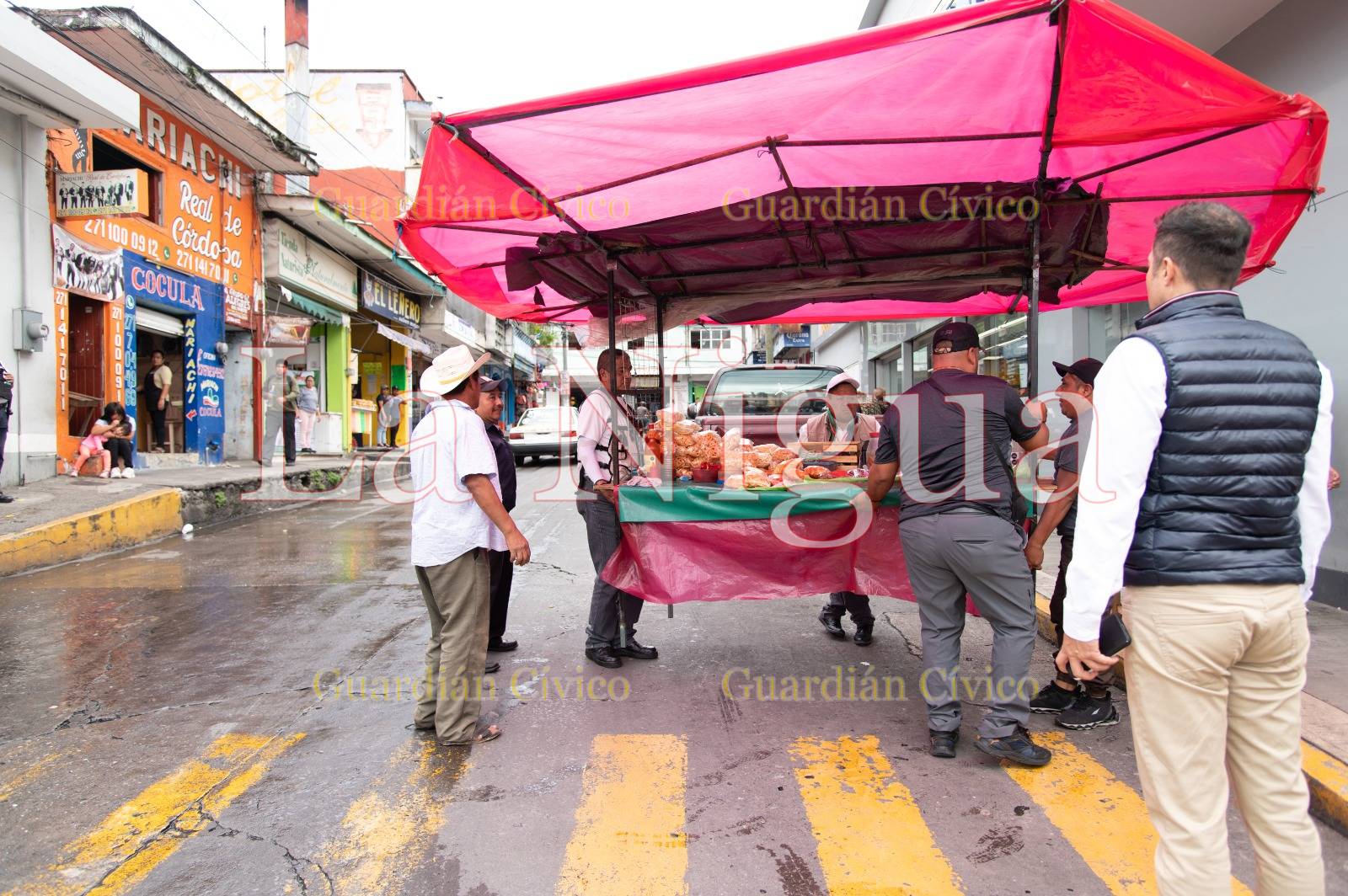 Córdoba, Ver., (17 de octubre de 2023). – Por segundo día consecutivo, autoridades municipales dieron seguimiento al Programa “Banqueta segura, primero el peatón” y procedieron al alineamiento de vendedores ambulantes, así como al resguardo de tres estructuras, de quienes no acataron la nueva Ley General de Movilidad y Seguridad Vial.