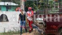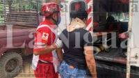 Paramédicos de la Cruz Roja valoraron a la mujer y la trasladaron al nosocomio local de esta ciudad para su atención médica.