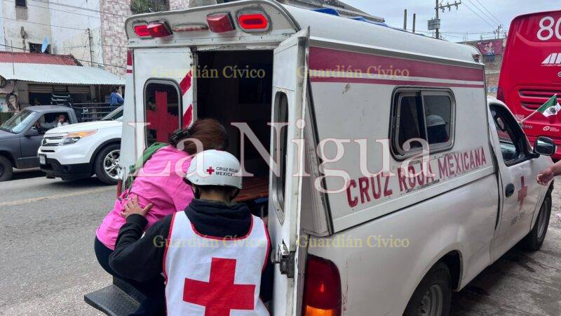 La mujer recibió los primeros auxilios en el lugar y posteriormente fue trasladada a la delegación de la benemérita institución para una mayor atención médica.