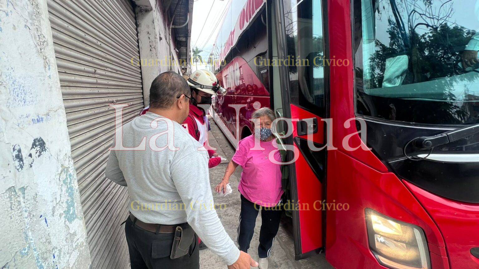 Producto del golpe, la mujer presentó una pequeña hemorragia, por lo que al llegar a la parada de autobuses solicitaron el apoyo de las unidades de emergencias.