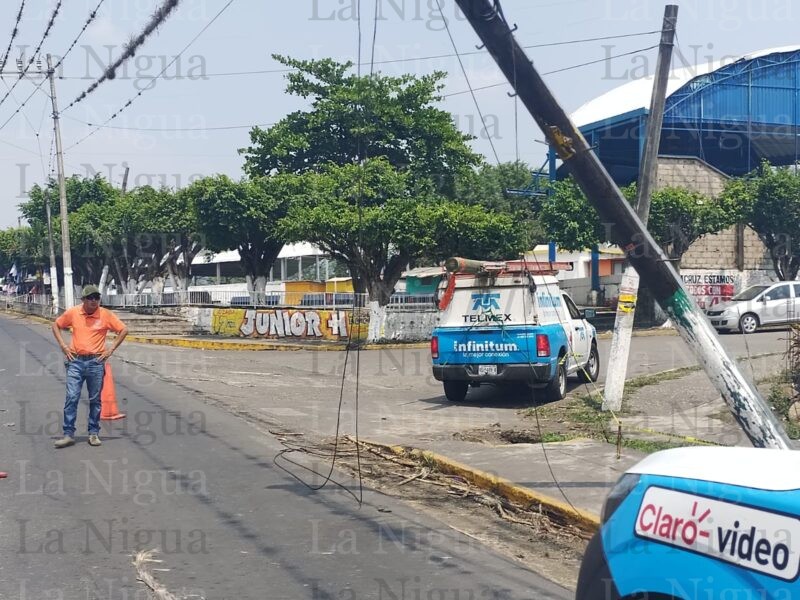 Atoyac.- El Ayuntamiento de Atoyac dio parte a Telmex sobre las afectaciones causadas por dos camiones cañeros a los cables y poste de la empresa en la avenida Ejército Nacional y calle Alfonso Vidal, en la villa general Miguel Alemán (Potrero Nuevo).