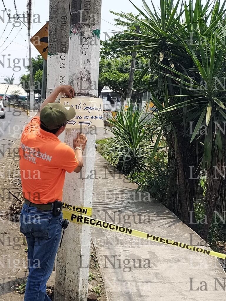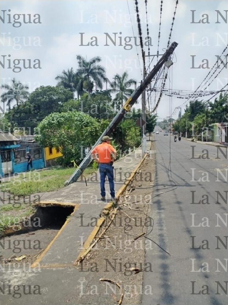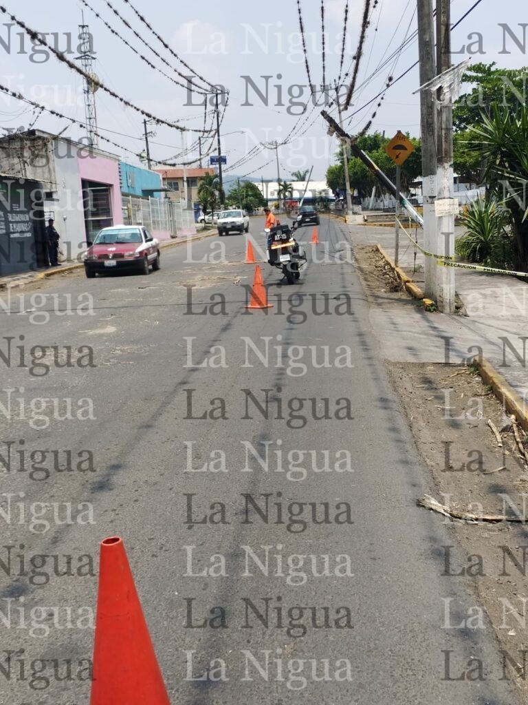 El día de ayer (miércoles 19) un camión cañero pasó por la avenida principal, llevándose los cables. El hecho fue reportado. Este jueves 20, otro camión cañero volvió a enredarse con los cables, pero ahora causó daños en el poste.