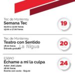 Siguiendo con el programa, el 19 el Tecnológico de Monterrey tendrá dos actividades de 9 a 13 horas y de 15 a 17 horas y el lunes 20, a las 18 horas, estará presentando “Teatro con Sentido”, presentación con acceso gratuito al público; para el 24 de marzo la ESBAO, estará montando la obra “Échame a mi la culpa” cuyo acceso será de $25.
