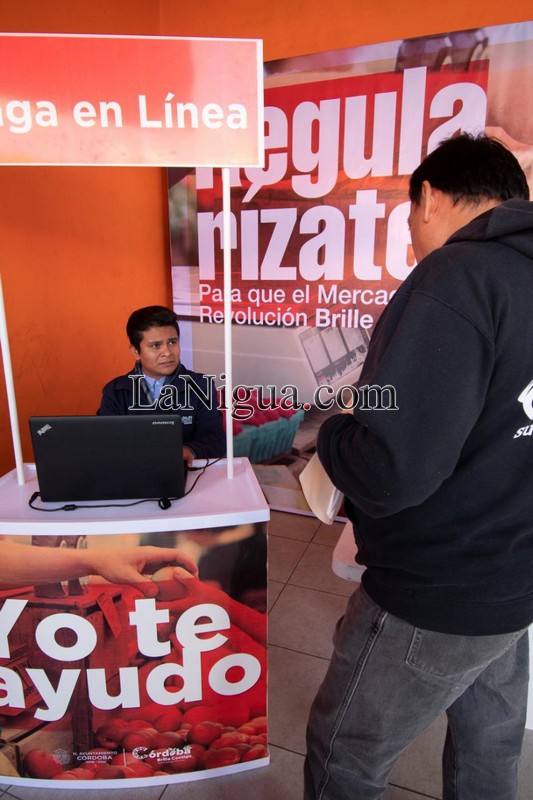 Córdoba, Ver.- A partir de este miércoles, el Ayuntamiento de Córdoba instaló un módulo de atención y pago en línea para que locatarios del mercado Revolución puedan regularizarse en cuanto a sus pagos por derecho de piso.