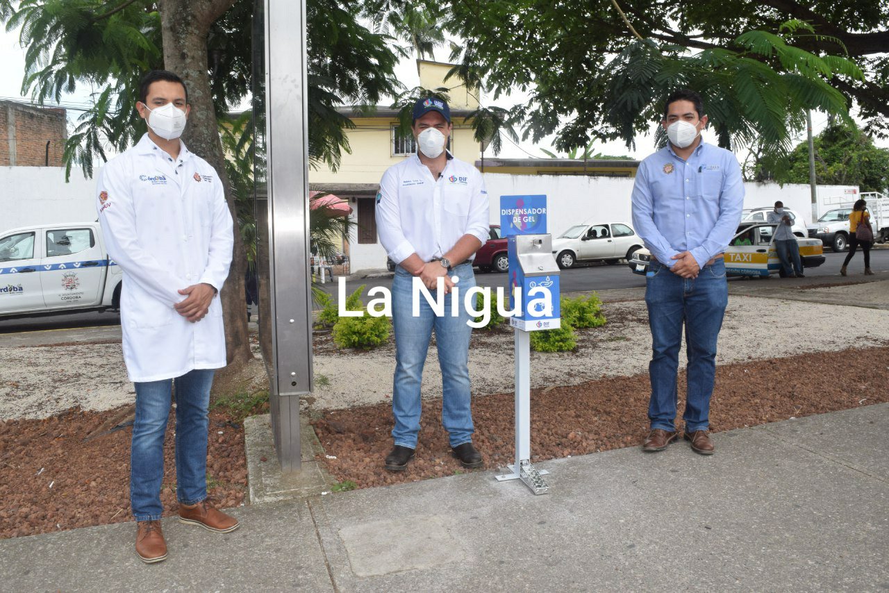 Córdoba, Ver.- El Ayuntamiento de Córdoba y el Sistema Municipal para el Desarrollo Integral para la Familia DIF (SMDIF) iniciaron este lunes la colocación de más de 89 dispensadores públicos de gel antibacterial en el marco de las acciones de la campaña de la salud DIF Contigo para contribuir a la mitigación de contagios por COVID.