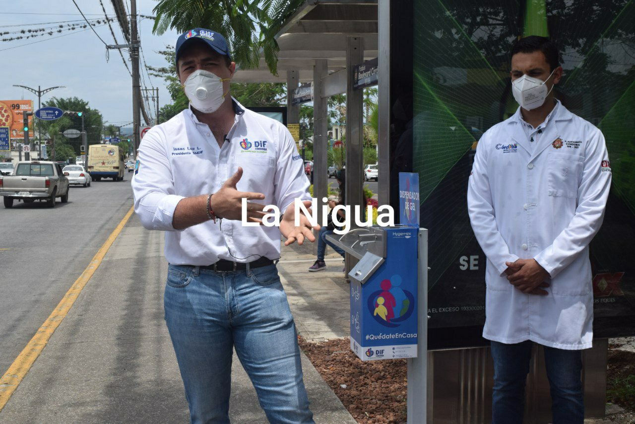 Luz López dijo que el SMDIF Córdoba impulsa la colocación de los dispensadores de gel antibacterial en paradas de autobús de mayor afluencia, así como afuera de bancos, mercados, parques, hospitales, zonas de comercio, entre otros puntos de encuentro y alta movilidad ciudadana.