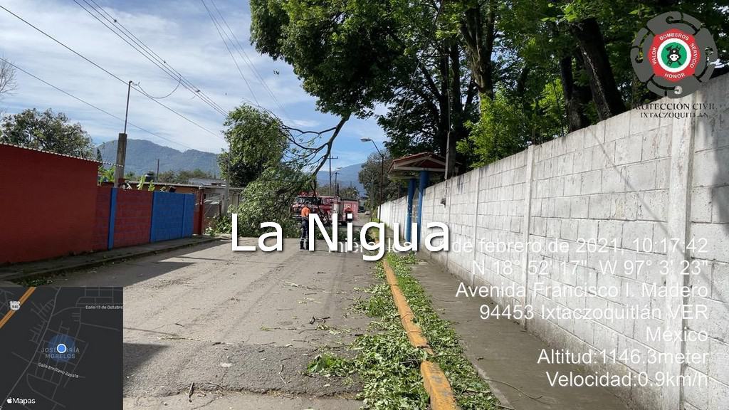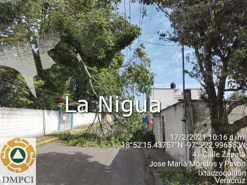 Ixtaczoquitlán, Ver. Cortes de energía eléctrica, desprendimiento de techumbres, caída de líneas eléctricas, árboles y ramas, así como láminas desprendidas y bloqueos parciales en vialidades primarias fueron algunas de las afectaciones que atendió oportunamente la Unidad Municipal de Protección Civil por el evento de surada que se registró este miércoles derivado del frente frío No. 36.