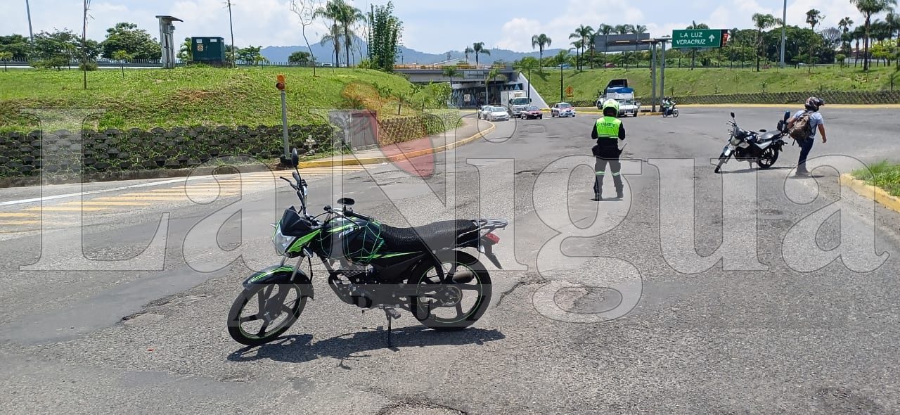 Al llegar al distribuidor vial, se presume que un autobús le cerró el paso, pará evitar una colisión el conductor de la moto, trato de cambiar de carril, pero cayó a uno de los baches que se encuentran en el lugar por falta de mantenimiento en la carpeta asfáltica.