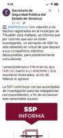 Igualmente, arribó otra ambulancia de Cruz Ámbar quienes apoyaron al trasladado de los lesionados al Hospital 24 del IMSS en Poza Rica para su atención médica donde los reportan como delicados. La SSP lanzó un comunicado, señalando que un elemento fue detenido, luego que disparó a sus compañeros a la hora del rancho (desayuno) resultando dos heridos y uno fallecido. Al parecer el agresor falleció de manera misteriosa, pues al parecer ingirió alguna sustancia que le alteró.