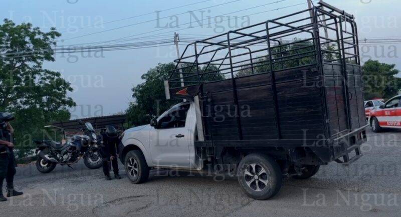 De acuerdo a los primeros reportes, la unidad marca Nissan con redilas, quedó en medio de la calle tras una persecusión y dónde sus ocupantes lograron salvar la vida y salir huyendo.