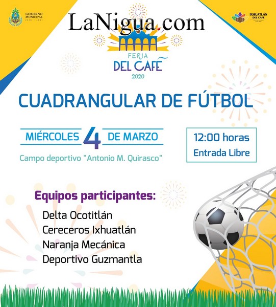 Así lo dio a conocer el titular de la Coordinación Municipal del Deporte, Andrés García Merino, quién señaló que en cuanto a las actividades deportivas dentro de la Feria Del Café 2020, se tiene preparado iniciar con un cuadrangular de fútbol el miércoles 4 de marzo a partir de las 12:00 horas entre equipos de la liga local de la cabecera municipal y de las comunidades de Ocotitlán y Guzmantla.