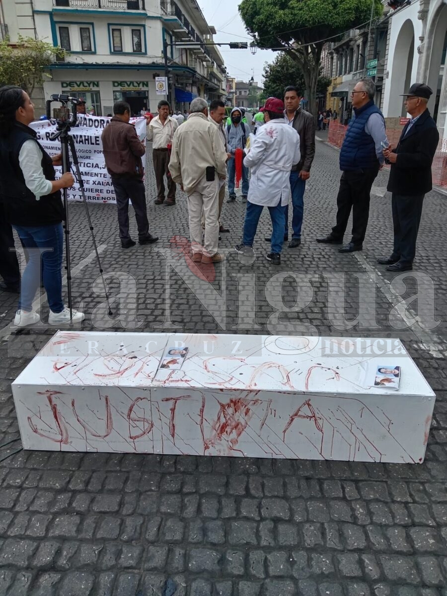 Xalapa, Ver.- La mañana de este martes, el señor Rafael Vázquez Vázquez, acompañado de familiares y ciudadanos, bloqueó la calle Enríquez, frente al Palacio de Gobierno, en exigencia de justicia por el asesinato de su hijo, Dorian Vázquez Lara, ocurrido el 28 de marzo de 2020. Denuncian que la Fiscalía General del Estado de Veracruz no ha avanzado en la investigación y que el caso sigue empantanado.