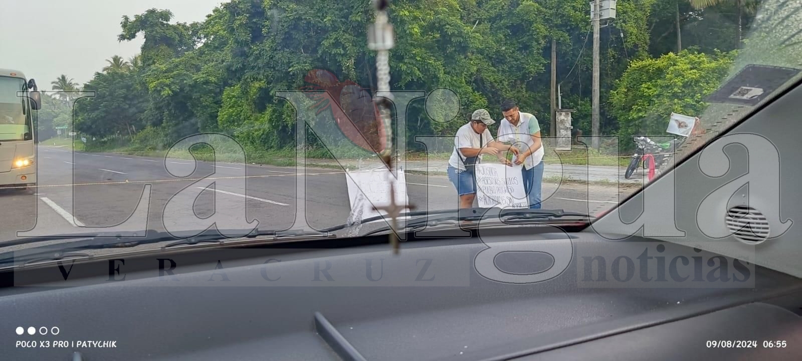 Habitantes de Antón Lizardo, en el municipio de Alvarado, bloquearon esta mañana la carretera local en ambos sentidos para exigir a la Fiscalía General de Veracruz una solución al conflicto entre dos particulares ocurrido en una tienda de autoservicio, que resultó en el asesinato de un joven.
