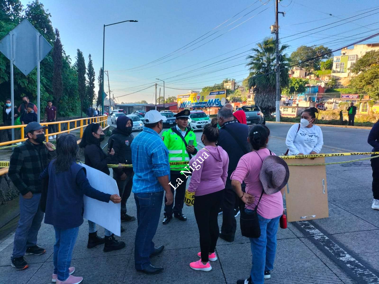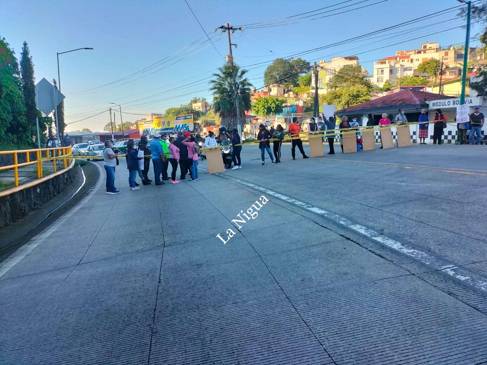 A, pesar de que ya entregamos varios oficios a la comisión municipal de agua potable y saneamiento de Xalapa (CMAS), no han he hecho caso de lo que estamos solicitando y por lo tanto, piden que sean recibidos por el presidente municipal de Xalapa, Ricardo Ahued Bardahuil, para que reparé la red de drenaje sanitario, por lo tanto con este bloqueo ya se hicieron largas filas de vehículos particulares, de trasporte público y de carga, la gente tiene que caminar cerca de tres kilómetros para abordar otro medio de transporte para llegar a su destino.