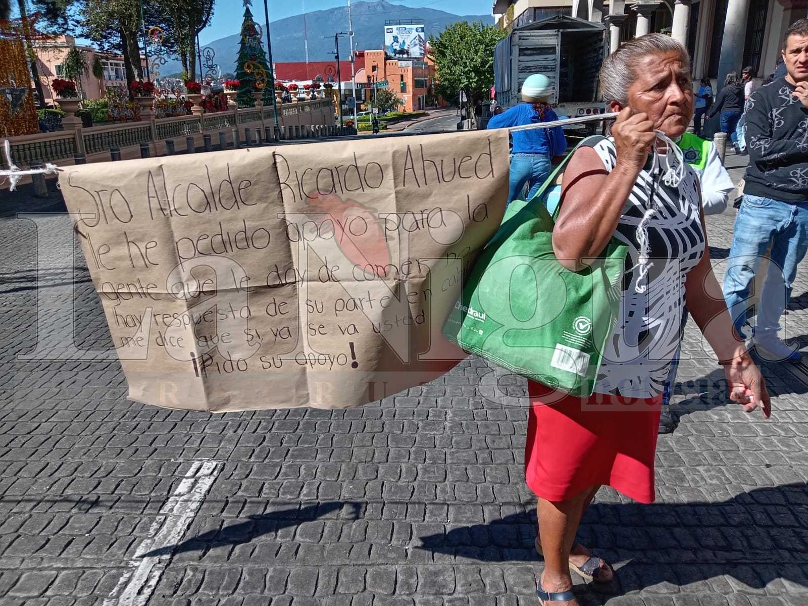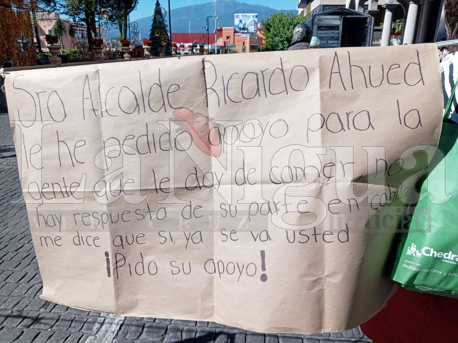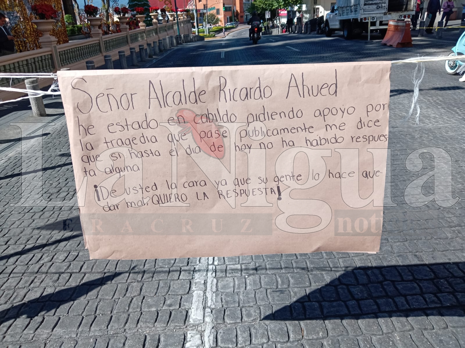 Xalapa, Ver.- Dos ciudadanas bloquearon la calle de Enríquez, frente al Palacio Municipal de Xalapa, en protesta por el incumplimiento de un apoyo económico que solicitaron hace un mes al alcalde Ricardo Ahued Bardahuil.