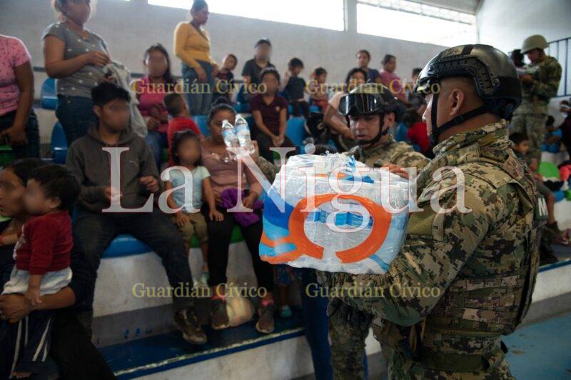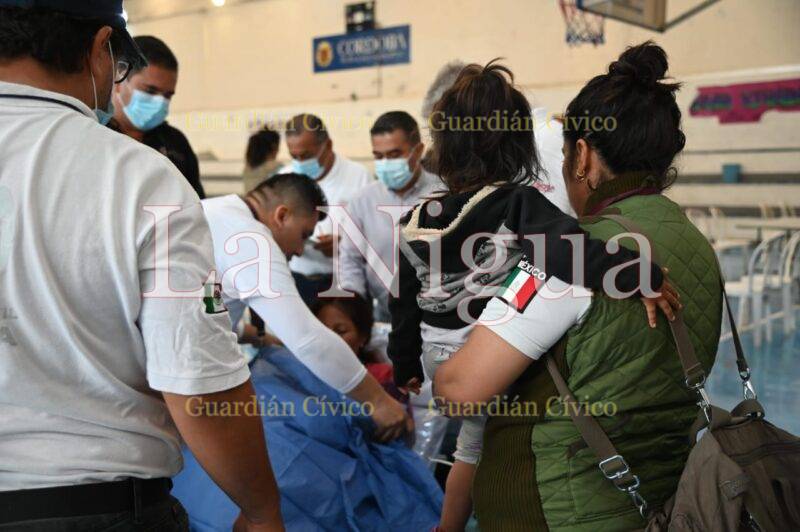 La Dirección de Protección Ciudadana y Movilidad, el Sistema Municipal de Desarrollo Integral de la Familia (DIF), la Coordinación Municipal del Deporte y Atención Ciudadana, otorgarán alimentos e hidratación para las mujeres, hombres y menores de edad en resguardo. Asimismo, SEDENA, Guardia Nacional y Marina, apoyaron en las labores.