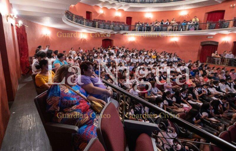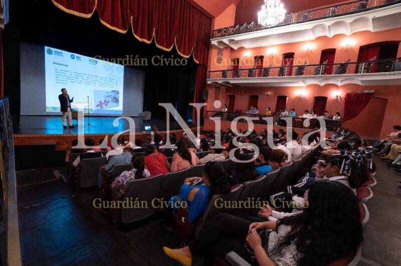 En la ponencia llevada a cabo en el teatro Pedro Díaz, acudieron los regidores Daniel Vázquez Hernández y María del Carmen Aguilar Mendoza, estudiantes de las escuelas: Benito Juárez García, Carlos Pellier, Telesecundaria José María Pino Suárez, Tebaev del Bosque, Miguel Hidalgo y Costilla, escuela 5 de Mayo, Guadalupe Victoria, UPV, Colegio Keyes, Agustín Millán, además de supervisores escolares de la zona 19.