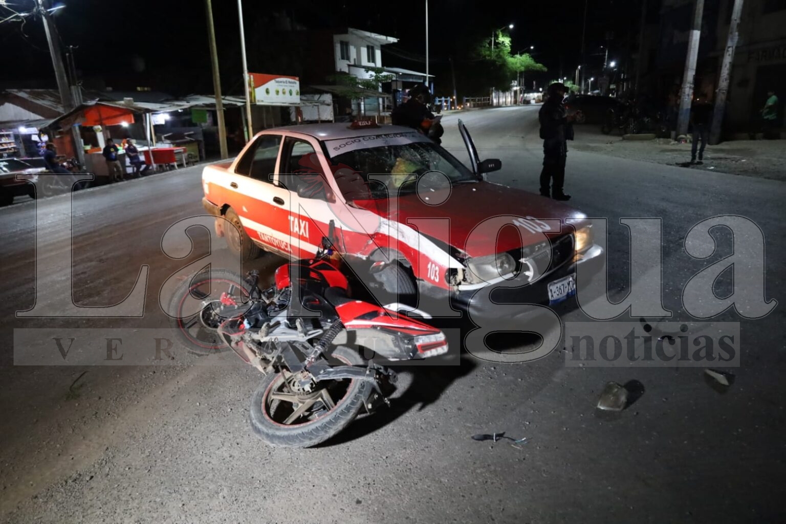 El taxi marcado con el número económico 103 es el presunto responsable de estos hechos, quedando asegurando, así como la motocicleta para deslindar responsabilidades, ya que los jóvenes estaban bajo los influjos del alcohol.