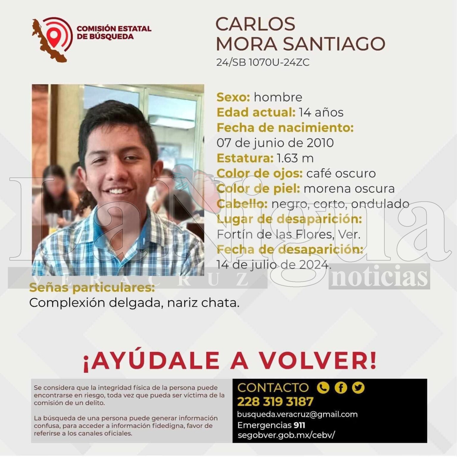 Compartir Facebook Twitter LinkedIn Pinterest Email Copy Link Súper Iberia: Tienda en línea Fortín, Ver.- El menor Carlos Mora Santiago, de 14 años, desapareció en Fortín, este domingo 14 de julio.