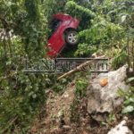 Al llegar al puente de Río seco el conductor perdió el control, salió del camino y cayó a un barranco de 40 metros. Tras el percance la pareja resultó con golpes y lesiones en diferentes partes del cuerpo.